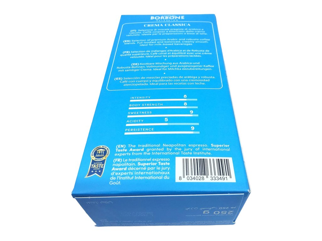 Mletá forma umožňuje jednoduchú prípravu v moka kanvičke, kávovare aj klasicky zaliatím – vždy však s výsledkom, ktorý pripomína autentické talianske espresso. Caffé Borbone Crema Classica je káva pre tých, ktorí hľadajú istotu, plnú chuť a každodenný rituál s príjemnou arómou a krémovým záverom. Stačí šálka a bežný deň sa na chvíľu zmení na malú kávovú pauzu v Taliansku.