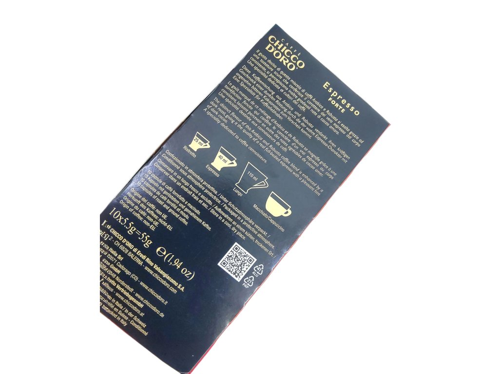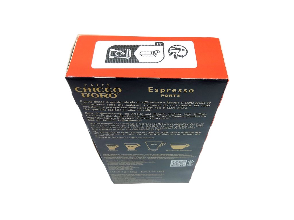 Kapsuly sú plne kompatibilné so systémom Nespresso, čo znamená, že si môžete doma pripraviť profesionálne espresso rýchlo, pohodlne a bez kompromisov na kvalite. Chicco d’Oro Espresso Forte je ideálnou voľbou pre tých, ktorí hľadajú kávu s odvahou a charakterom – šálku, ktorá prebudí zmysly, poteší chuťové poháriky a spríjemní každý okamih.