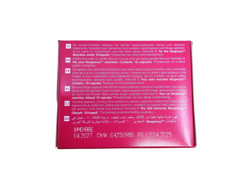 Stelesnenie poctivého baristického umenia ukrytého do malej kapsuly. Ide o espresso s výrazným charakterom, ktoré si Vás získa už pri prvom pohľade – hustá, zamatová crema v odtieni hnedých lieskových orieškov je dokonalou predzvesťou intenzívneho chuťového zážitku.
