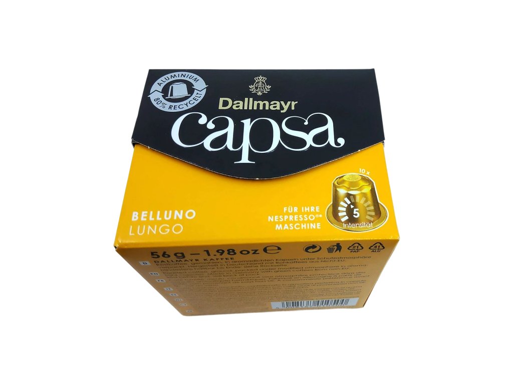 Veľkou výhodou je, že kapsule sú kompatibilné s kávovarmi Nespresso*, takže si túto výnimočnú chuť môžete pripraviť rýchlo a pohodlne vo Vašom obľúbenom kávovare. Ak hľadáte kávu, ktorá je jemná, čistá, mäkká a zároveň chuťovo zaujímavá, Dallmayr Lungo Belluno premení každú šálku na malý, elegantný rituál plný harmónie.