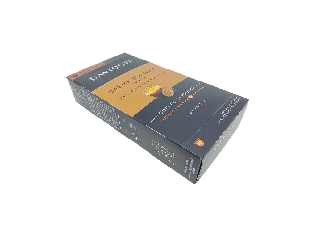 Každá kapsula je vytvorená s dôrazom na kvalitu a čerstvosť, takže si môžete byť istí konzistentným výsledkom pri každom použití. Či už si doprajete ranný Lungo na prebudenie, popoludňajší relax pri knihe alebo večerný rituál s priateľmi, Davidoff Crema Elegant premení každý okamih na harmonickú, kávou nabitú skúsenosť, kde sa spája elegancia, jemnosť a čistá radosť z chuti.