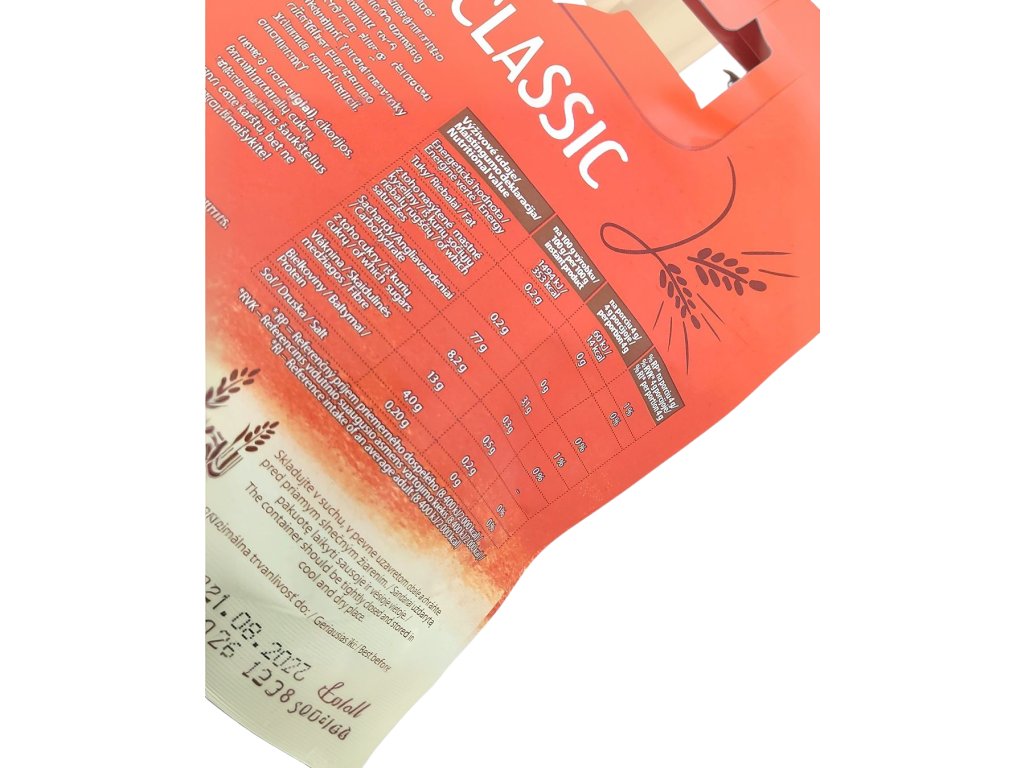 Zloženie: obilniny 93 %( jačmeň, raž), čakanka. Bez prídavku cukru. Obsahuje prírodné cukry.