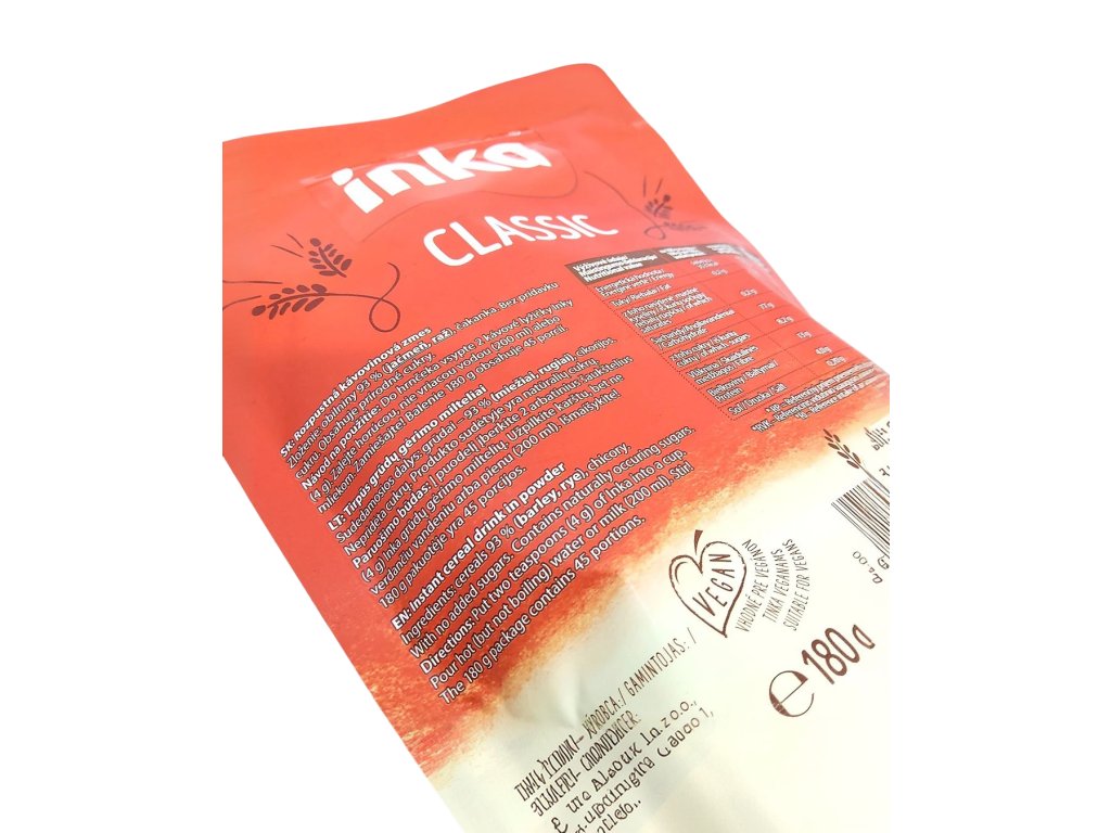 Príprava je jednoduchá a univerzálna – Inka Classic si môžete pripraviť ako klasické rozpustené nápoje, v šálke s horúcim mliekom alebo aj na varenie v kávovare či cez filter, pričom vždy získate lahodný a uspokojivý výsledok. Vďaka svojej vyváženej chuti je Inka Classic ideálnou voľbou nielen na ranné povzbudenie, ale aj na popoludňajšie chvíle oddychu či večerné relaxovanie, keď túžite po nápoji, ktorý zahreje, upokojí a poteší chuťové poháriky, no zároveň nezaťaží telo kofeínom. Je to kávovinová klasika, ktorá sa stala obľúbenou súčasťou domácností po celé desaťročia, spájajúca tradíciu s praktickosťou a lahodným pôžitkom pre každú príležitosť.