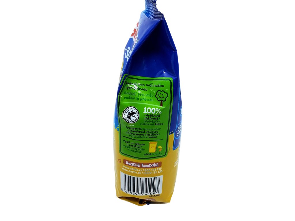 Zloženie: jemná celozrnná bezgluténová OVSENÁ múka 32,2 %, cukor, 25 % kakaového prášku so zníženým množstvom tuku1, rozpustná kukuričná vláknina, glukózový sirup, emulgátor (SÓJOVÝ lecitín), prírodné arómy, mletá škorica.