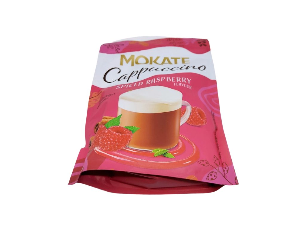 Tento cappuccino nápoj je ideálny pre každého, kto miluje netradičné a inovatívne kombinácie – malinová ovocná sviežosť spolu s korenistou sladkosťou cappuccina vytvára nezabudnuteľný chuťový zážitok, ktorý osvieži vaše chvíle oddychu a dodá im malú dávku luxusu. Mokate Cappuccino Spiced Raspberry je tak perfektnou voľbou pre všetkých, ktorí chcú spojiť kvalitnú kávu s originálnou ovocnou príchuťou a potešiť svoje zmysly v každom dúšku.
