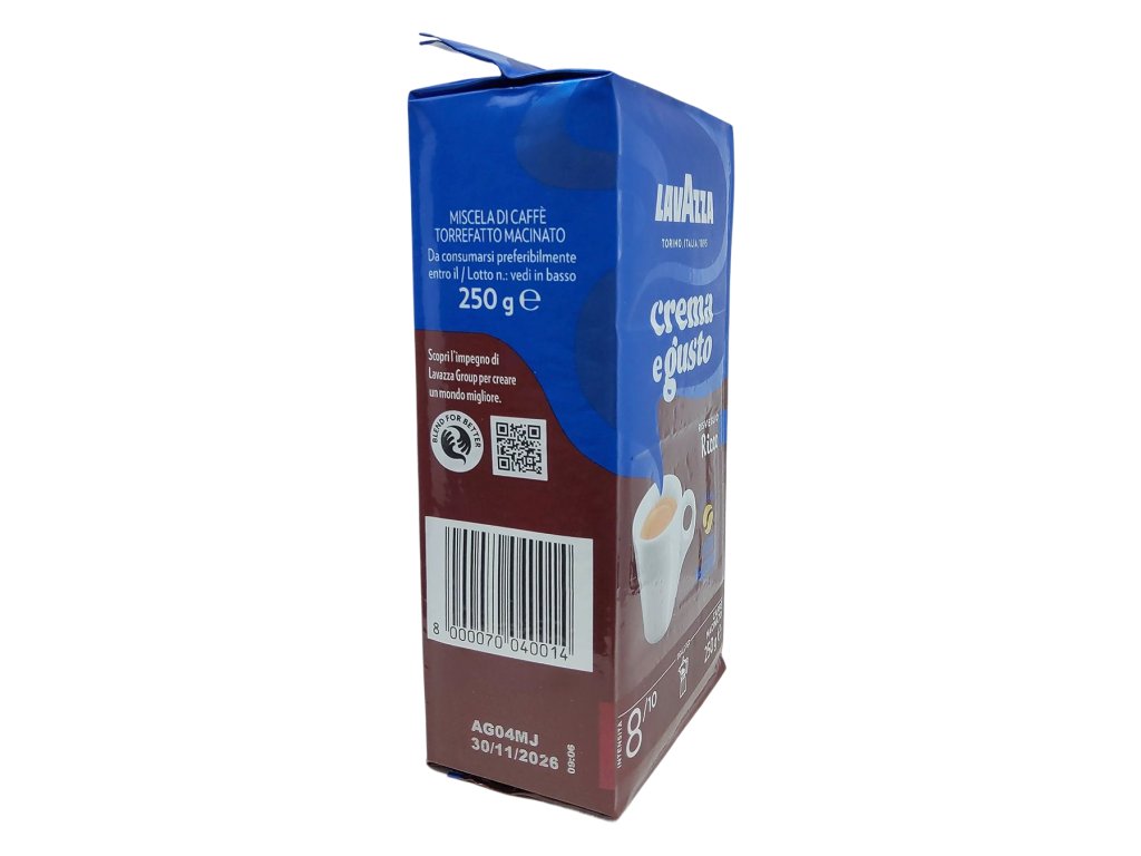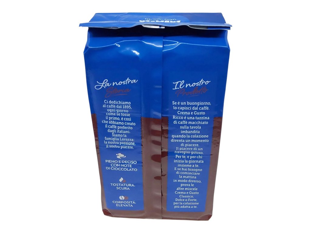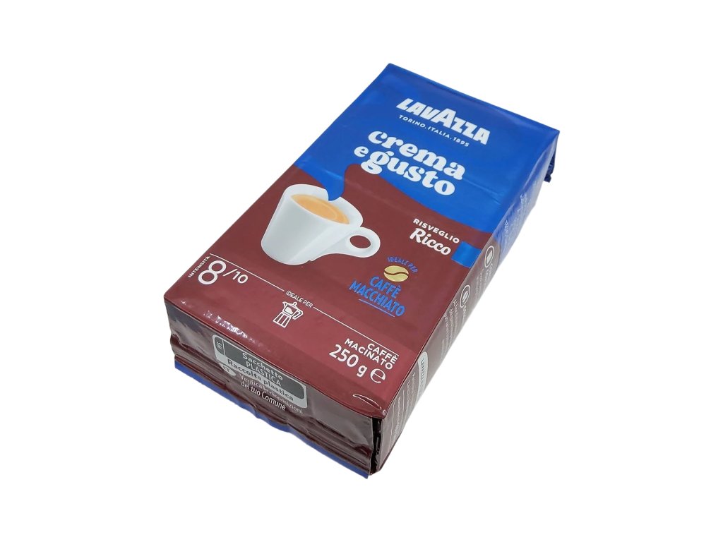 Lavazza Crema e Gusto Ricco je mletá káva zo zmesi arabicky a robusty. Intenzívná chuť tejto kávy si vás získa vôňou karamelu a kakaa.