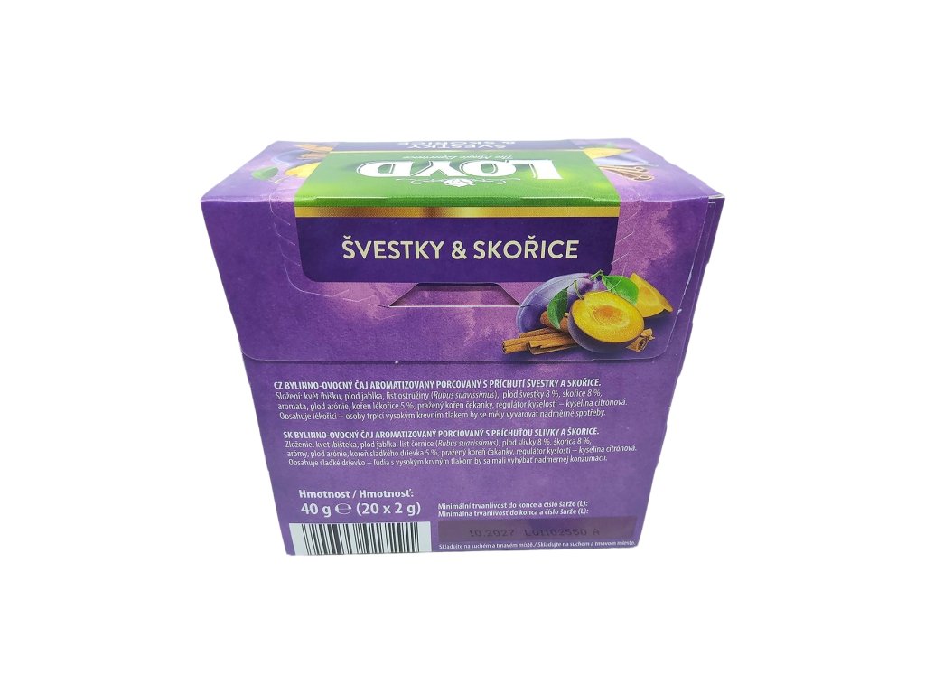 Bylinno - ovocný čaj aromatizovaný porciovaný s príchuťou slivky a škorice