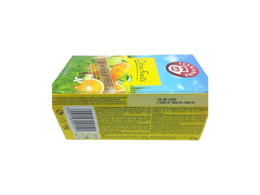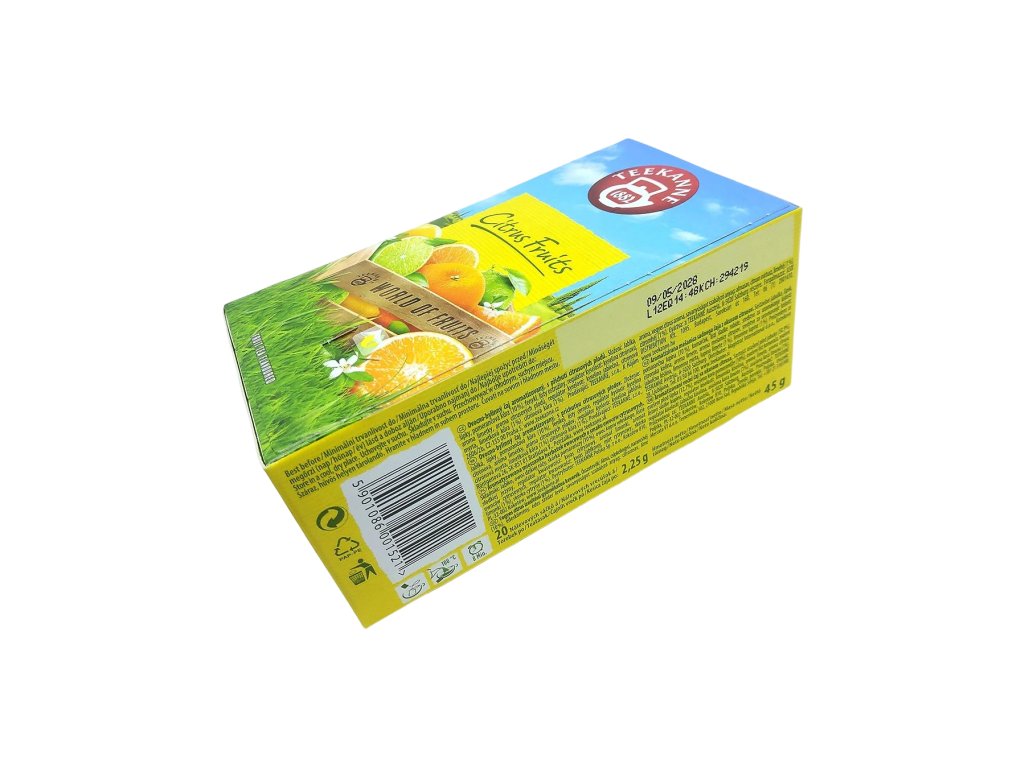 Každý dúšok Teekanne Citrus Fruits je pozvaním do sveta, kde sa stretáva sladkosť citrusov s jemnou sviežosťou, a vytvára tak nápoj, ktorý nielen osvieži telo, ale aj prebudí myseľ. Tento čaj je perfektnou voľbou pre každého, kto si chce dopriať chvíľku pohody a zároveň objaviť kúsok exotickej energie vo svojom šálke.